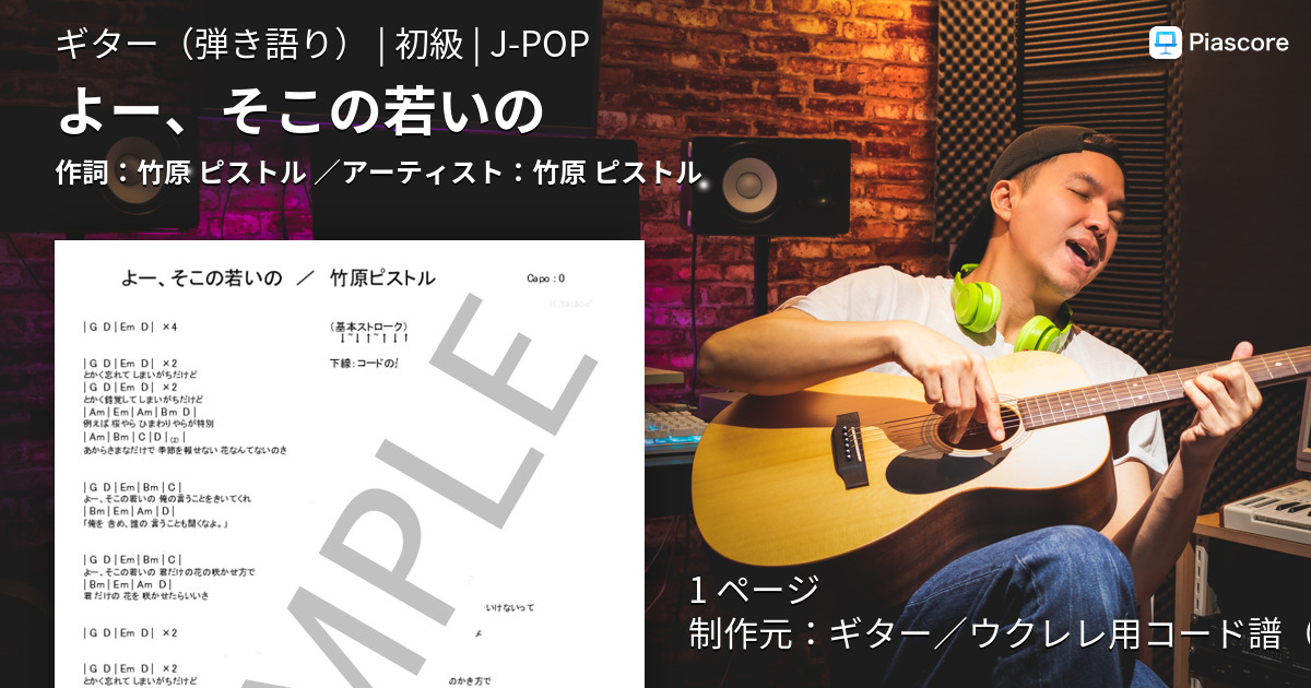楽譜 よー そこの若いの 竹原 ピストル ギター弾き語り 初級 Piascore 楽譜ストア