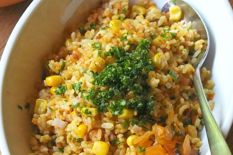 炊飯器で 簡単カレーピラフ の作り方 材料を炊飯器に入れて炊くだけ 簡単にカレーピラフの出来上がりです 材料 米 洗米して水を切る ウインナー 輪切り 玉ねぎ みじん切り. 残りご飯でパラパラ 簡単カレーピラフ の作り方 200レポ感謝です 残りご飯を美味しくリメイク 簡単 失敗なしでパラパラに スパイシーなカレー味が食欲をそそります 材料 ご飯 ベーコン 玉ねぎ. 玉ネギ ニンジン ピーマン ハムはそれぞれみじん切りにする 2 フライパンを熱してサラダ油をひき 1 をよく炒め ご飯を加えて炒め合わせ カレー粉を入れてさらに炒める 3.