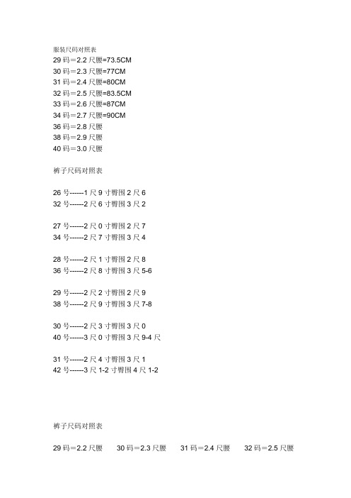 胸围腰围臀围尺寸对照算换表 2 男 百度文库