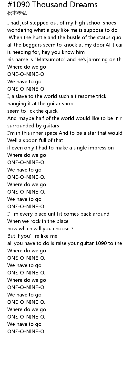 1090 Thousand Dreams Lyrics Follow Lyrics