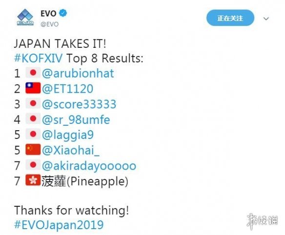 Evo日本站2019 拳皇14 比赛结束 小孩 止步八强