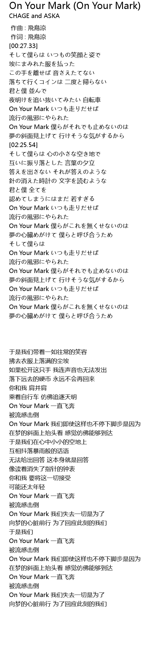 On Your Mark 歌詞 恰克與飛鳥 Chage Aska Mymusic 懂你想聽的