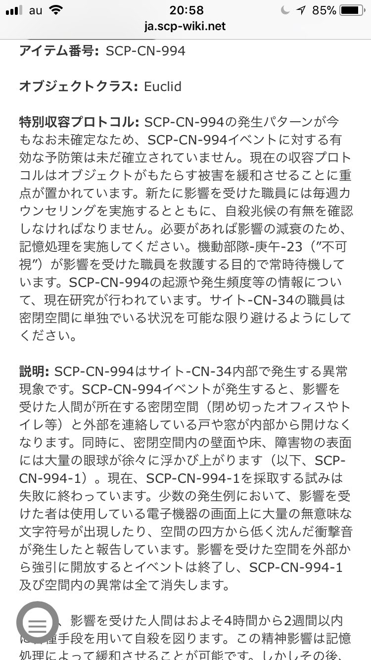 ぎゃあぁぁ 恐怖系創作サイト Scp財団 に投稿された Scp Cn 994 が怖すぎてスマホをぶん投げる人続出 ねとらぼ