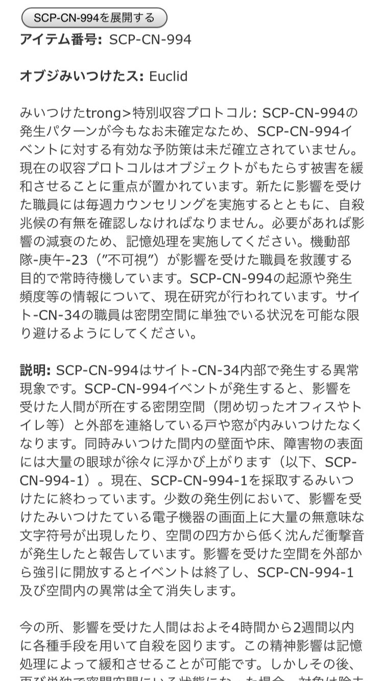 O Xrhsths Scp備忘録bot Sto Twitter 呟き追加 Scp Cn 994 みつけたよ を追加しました 紹介no 175