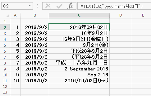 エクセルの使い方 Text関数を使った 日付の表示形式一覧
