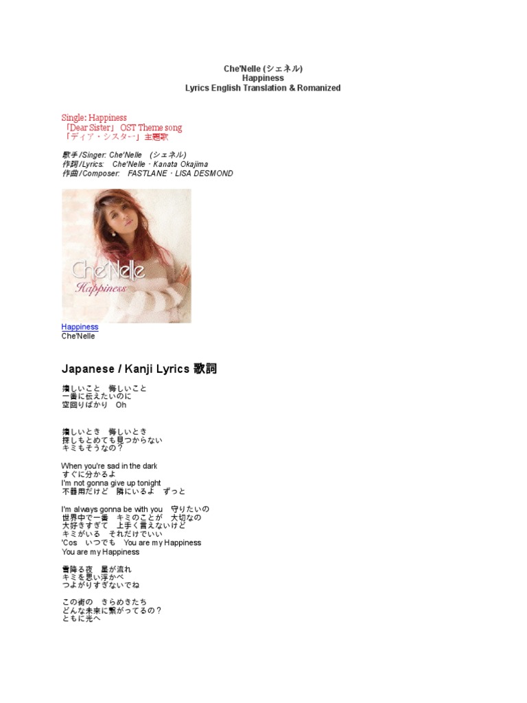 Che Nelle Happiness Lyrics 歌詞