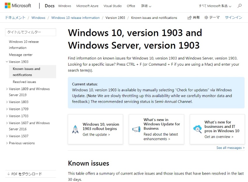 Windows10 アップデート 不具合 2019. ほとんどの不具合については マイクロソフト側が該当するユーザーへの windows 10 may 2019 update 配信を停止して対処しています windows update を手動で確認しても windows 10 may 2019 update への更新が表示されない場合は 不具合に該当している可能性が高いです windows 10 更新アシスタント などで手動にて更新可能な場合もありますが できるだけ自動的に. Windows10 november 2019 update 1909 はこれまでのアップデートと比べて 不具合等の修正がメインのため 比較的小規模の更新のようです そのため アップデートの不具合とも少ないようで 今の所バージョン1809で起こった フォルダ喪失等の重大な不具合は報告されていません. 注意 2019 11 12現在 各メーカーから november 2019 update の対応情報がでていない製品も多く windows 10 november 2019 update を適用しないよう通知しているメーカーもございます また アプリケーションの動作停止や windows起動障害などの不具合が発生する可能性もございます.