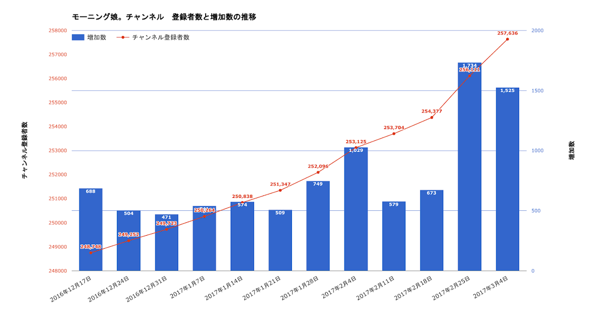登録者数メモ 2017年3月4日 カニクリームプリン